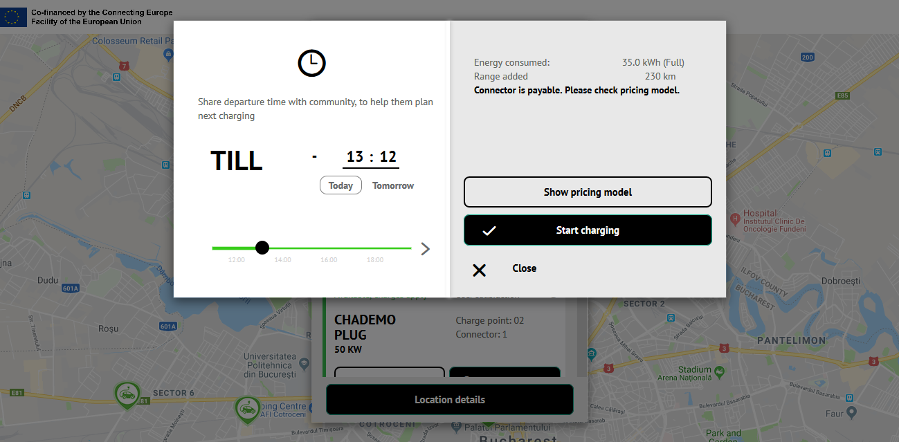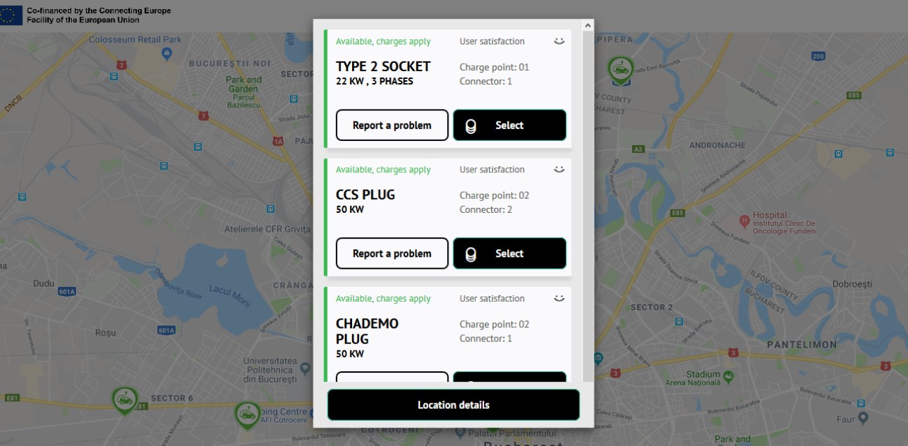Select from map the charging station you want to use
